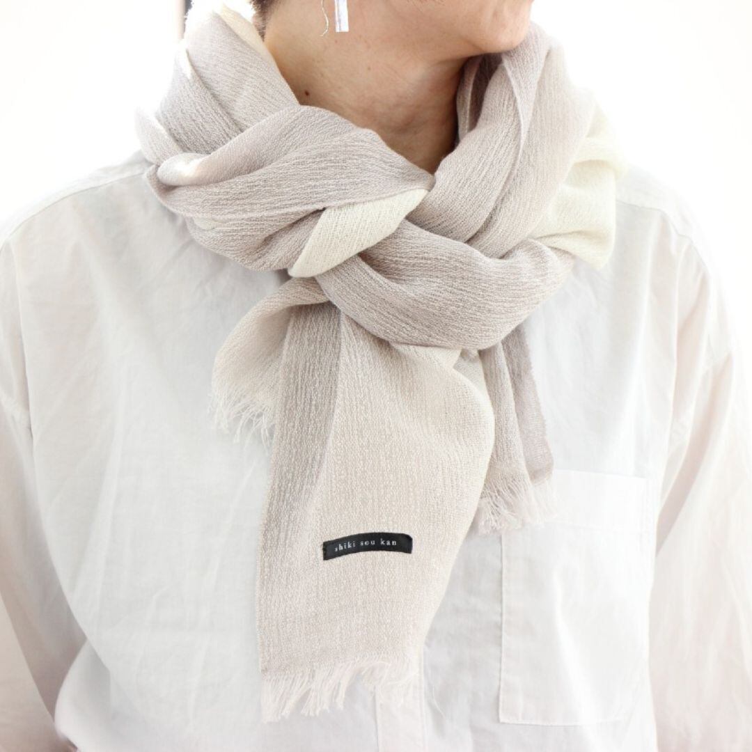 綿ウールの素材のラフさが加わって、首に巻くだけだけで一つ上のオシャレを楽しむことが出来ます♩